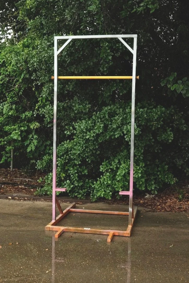 Welded steel and powder coated, core drilled and anchored in concrete at the East End Maker Hub